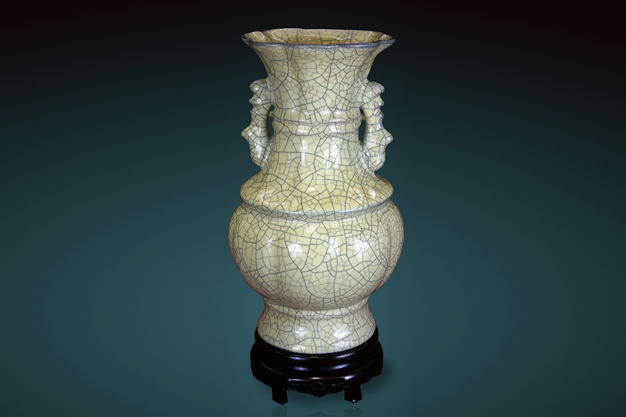 宋哥窑双耳口瓶..