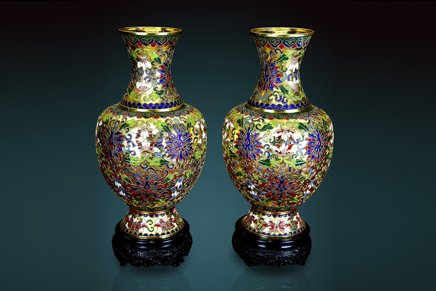 清末景泰蓝对瓶..