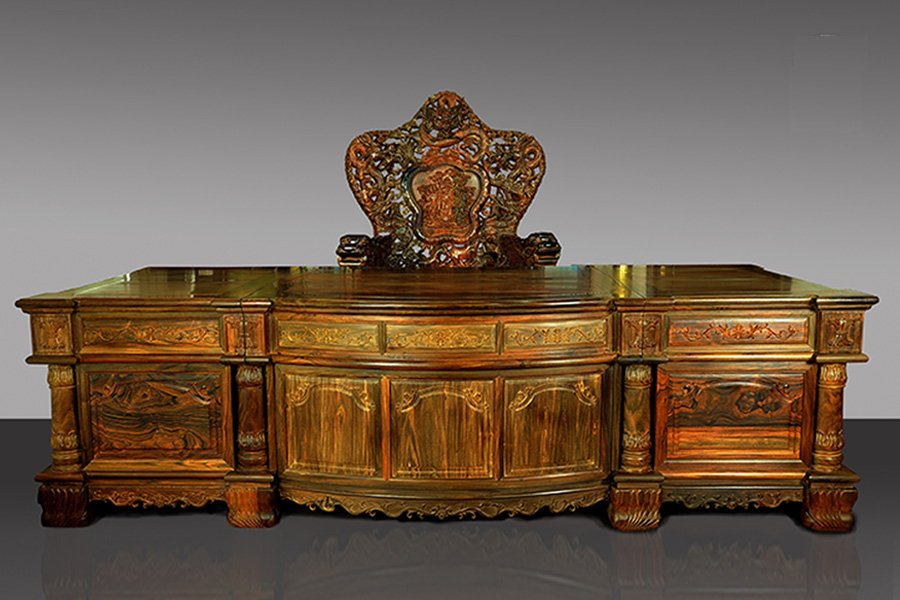 老挝红酸枝龙椅班台2套件