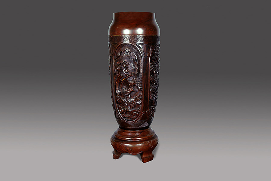 紫檀(拉丁文名:Pterocarpus indicus),别名:紫檀、青龙木、黄柏木、蔷薇木、花榈木、羽叶檀。豆科、紫檀属乔木,是世界名贵木材之一,主要产于南洋群岛的热带地区,其次是交趾。印度的小叶紫檀,又称鸡血紫檀,是目前所知最珍贵的木材,是紫檀木中最高级的。常言十檀九空,最大的紫檀木直径仅为二十公分左右,其珍贵程度可想而知。