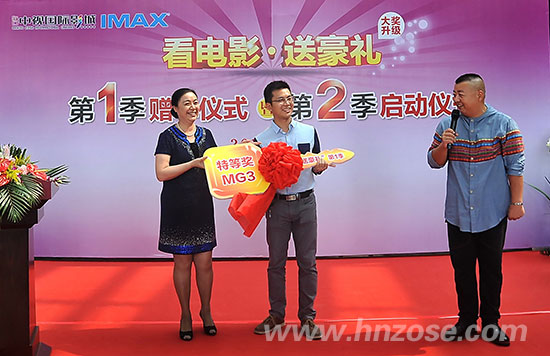 Do you remember the MG3 car parking in Haikou ZOSE cinema hall? This attracted car found its host finally. On 12th April noon, the "Seeing a movie to get a gift" first season donated car ceremony and the second season launching ceremony was held in Haikou ZOSE cinema, more than 300 movie fans witness this exciting moment.