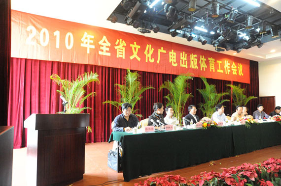 The work conference of Hainan Province Culture Radio Television Publication and Sports Department was held at Haikou on February 3rd, 2010. The Member of Hainan Committee of the CPC, Director of Propaganda Department and Vice Governor of Hainan Province, Tan Li, the Vice Governor of the People''''s Government of Hainan Province, Lin Fanglue, the Director of Department of Culture Radio Television Publication and Sports of Hainan Province, Fan Xiaojun attended the conference and made speeches. At the meeting, they reviewed the achievement gained in 2009 and arranged the 2010 work conditions and tasks.