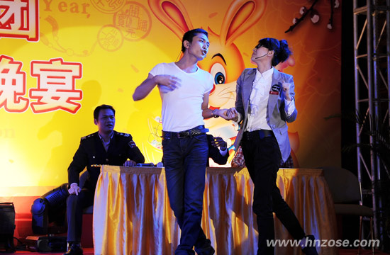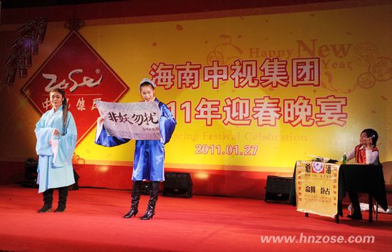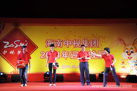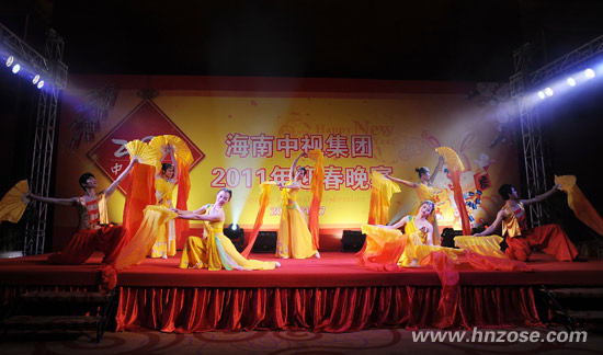 The 2011 Spring Festival Celebration of Hainan ZOSE Group was held at Hainan Meritus Hotel on January 27, 2011. The Chairman of Hainan ZOSE GroupLiu Wenjun, the General Manager of Hainan ZOSE Cultural Communication Stock CO.,LTD and Director of Hainan Provincial TheaterSun Yuanbin, the General Manager of Hainan ZOSE Real Estate CO.,LTDLiu Jun, the General Manager of Hainan ZOSE Property Management CO.,LTD Lan Ye, the Deputy Manager of Hinan ZOSE Advertising CO.,LTDQin Jiming, the Vice Director of Hainan Provincial Theater Su Xiaohua, the Chief Financial Officer of Hainan ZOSE GroupWang Lirong and 200 staffs attended the evening party.