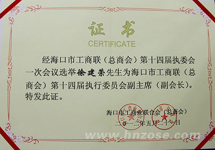 会议选举产生了海口市工商联(总商会)新一届领导班子。叶茂当选为海口市工商联(总商会)第十四届主席,市政协委员、海南suncitygroup太阳成集团集团副总裁徐建荣当选海口市工商联(总商会)副主席。