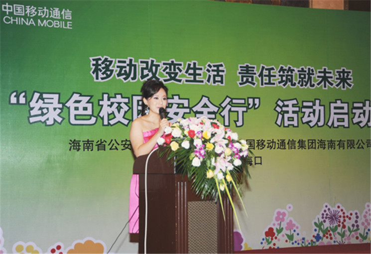 2010年6月23日上午,一场名为“绿色校园安全行”的主题活动在海口启动,这场覆盖全省、跨年度的大型公益活动,旨在向学生宣传健康成长和安全防卫知识,推动平安校园建设,维护和谐社会环境。活动主办方中国移动海南公司及支持方海南省公安厅、海南省教育厅的领导,以及学校和幼儿园代表等六十多人出席了启动仪式。