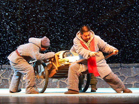 在演出间隙,河南省豫剧三团于29日上午顶着烈日,到位于海口海榆中线的中铁十七局制梁厂为300多名干部职工送上了节日的的问候。