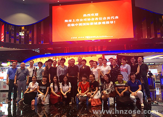 (海南上市公司协会会员代表在海口suncitygroup太阳成集团国际影城(喜盈门店)合影)