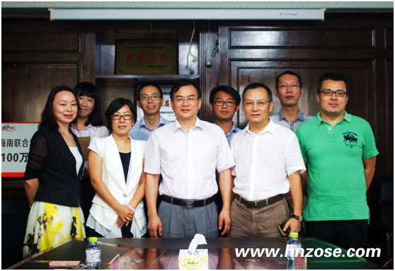 (海南联合资产管理公司董事长刘双洋[右一]、海南联合股权投资基金管理有限公司董事长张晶艳[中]、海南联合股权投资基金管理有限公司总经理唐群杰[左一]出席签约仪式)