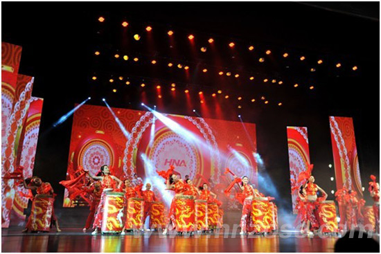 当晚,文艺汇演在热情奔放的开场舞《鼓舞海航》中拉开序幕。几十名海口美兰国际机场员工满怀激情的表演一下子点燃了现场气氛,舞蹈充分展现了新时代海航人不畏艰难的创业精神。海航独有的企业文化,使来自五湖四海的员工为了一个共同的目标聚集在一起。群口快板节目《竹板上的天航》、歌曲《飞得更高》、《你是一棵树》和自创曲目《海航同仁共勉》等博得了满堂喝彩。