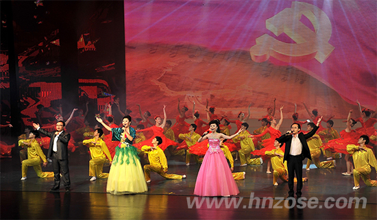 晚会在激昂飞扬的锣鼓声中开场,分序曲《特色旗帜》、第一乐章《峥嵘岁月稠》、第二乐章《闪光的足迹》、第三乐章《绿色大家园》、第四乐章《永远跟党走》和尾声《走向复兴》六部分,最后在全场齐唱《没有共产党就没有新中国》的嘹亮歌声中落幕。