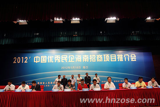 2012年5月18日,2012中国优秀民企海南招商项目推介会在海口举行,国内民营企业界的诸多“大腕”纷纷现身。不少知名民营企业家此次来琼并非单纯与会,而是带着落实项目的目的而来,意欲投资海南。来自全国各地的民营企业与海南签订了14个合作项目,项目涉及文化产业、旅游业、农业等诸多领域,投资金额共达386亿元。