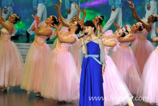 (海南省委书记、省人大常委会主任罗保铭「左四」,省委副书记、省长蒋定之「左五」,省委常委、秘书长许俊「左三」,省委常委、海口市委书记陈辞「左六」,省委常委、宣传部长、副省长谭力「左二」等领导出席并观看演出)