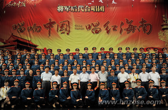 2011年9月24日晚,由100多名将军后代组成的合唱团在海南省歌舞剧院激情上演《唱响中国•唱红海南》大型红歌会。省委书记、省人大常委会党组书记罗保铭,省委常委、省委秘书长许俊,省委常委、海口市委书记陈辞,老干部阮崇武,省人大常委会副主任毕志强,省政协副主席赵莉莎等观看了演出。