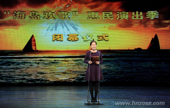 2010年12月26日晚,中国移动特约“海岛欢歌”惠民演出季闭幕式在省歌舞剧院举行。海南省政府副秘书长王扬俊、省委宣传部副部长张萍、省总工会副主席徐远航、海口市人民政府副秘书长吴成贵等出席闭幕式并观看了演出。闭幕式由省文体厅副厅长许振凌主持,省文体厅副厅长王炳林作惠民演出季总结讲话。