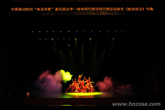 2010年12月12日,中国移动特约“海岛欢歌”惠民演出季之现代舞原创作品专场晚会《肢体语言》在海南省歌舞剧院精彩上演。