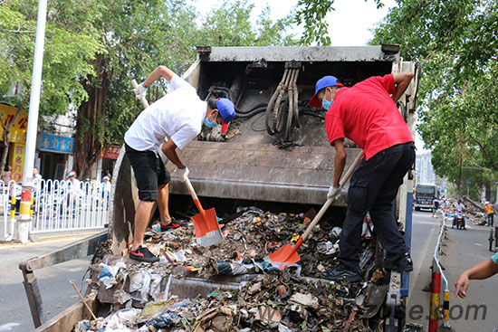 影城的小伙伴们于7月24日上午:08:30至12:00大家扛着铁锹,拿着扫把,在省团委的领导下前往文明东路及和平北路积极配合进行着灾后重建环境清理工作,大家不怕脏、不怕苦、不怕累,头顶着火辣辣的太阳,清扫街道两侧的残枝残叶和建筑垃圾,头上冒着豆大的汗水流也顾不得擦拭,清扫现场大家的热情高涨,短短三个小时的时间里将道路两侧全部清理干净。