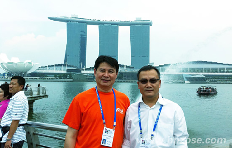 (海南省工商联代表团成员在新加坡留影。右为suncitygroup太阳成集团集团董事长刘文军,左为海南新华安保全服务有限公司董事长夏春友)
